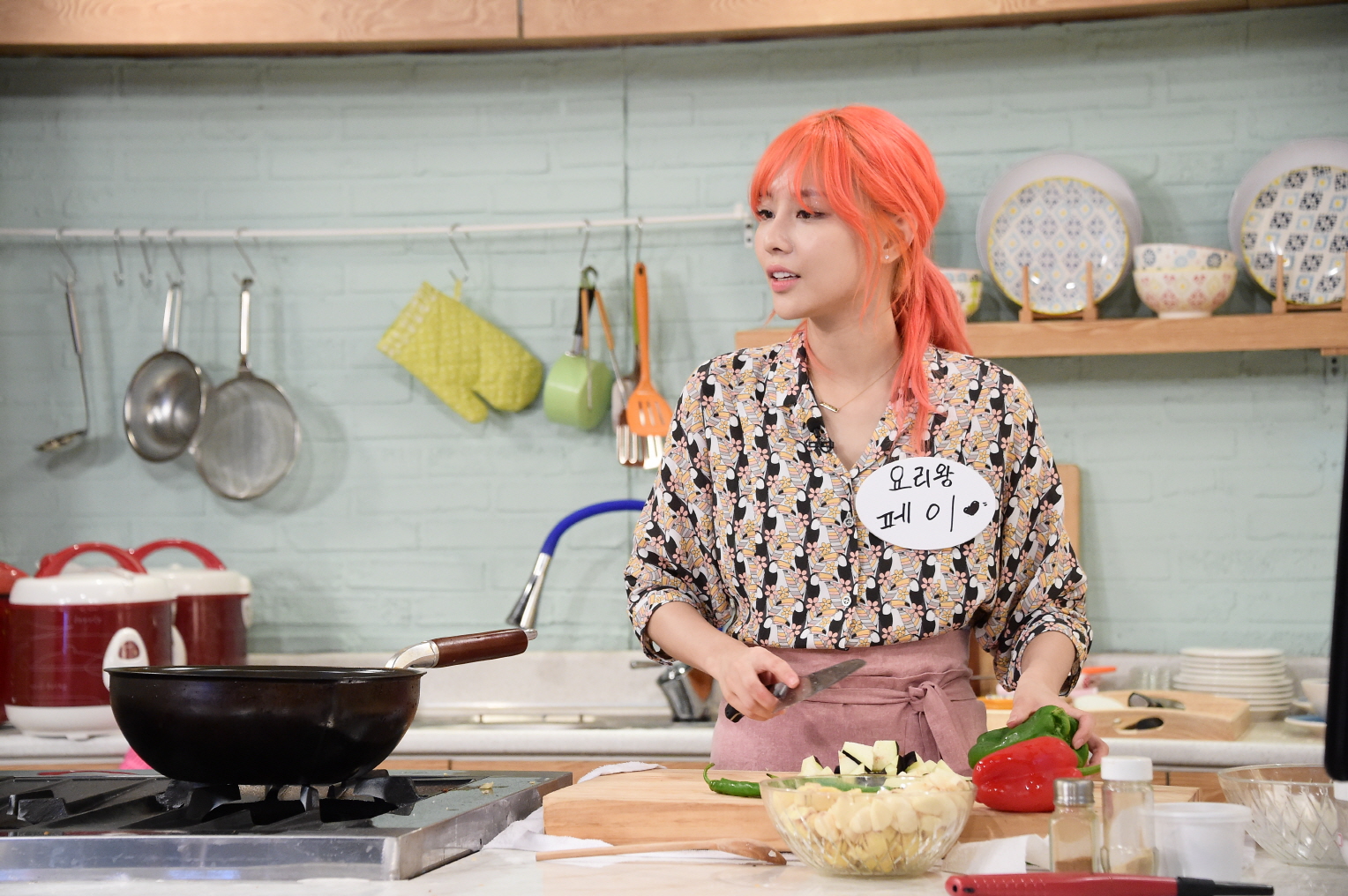 페이는 방송이 시작되자마자 손님맞이용 한상차림 음식을 만들기 시작했다. 짧은 시간 안에 깜짝 놀랄만한 비주얼의 닭찜요리부터 독특한 비주얼의 김계란탕까지 다양한 음식들을 만들어냈다.