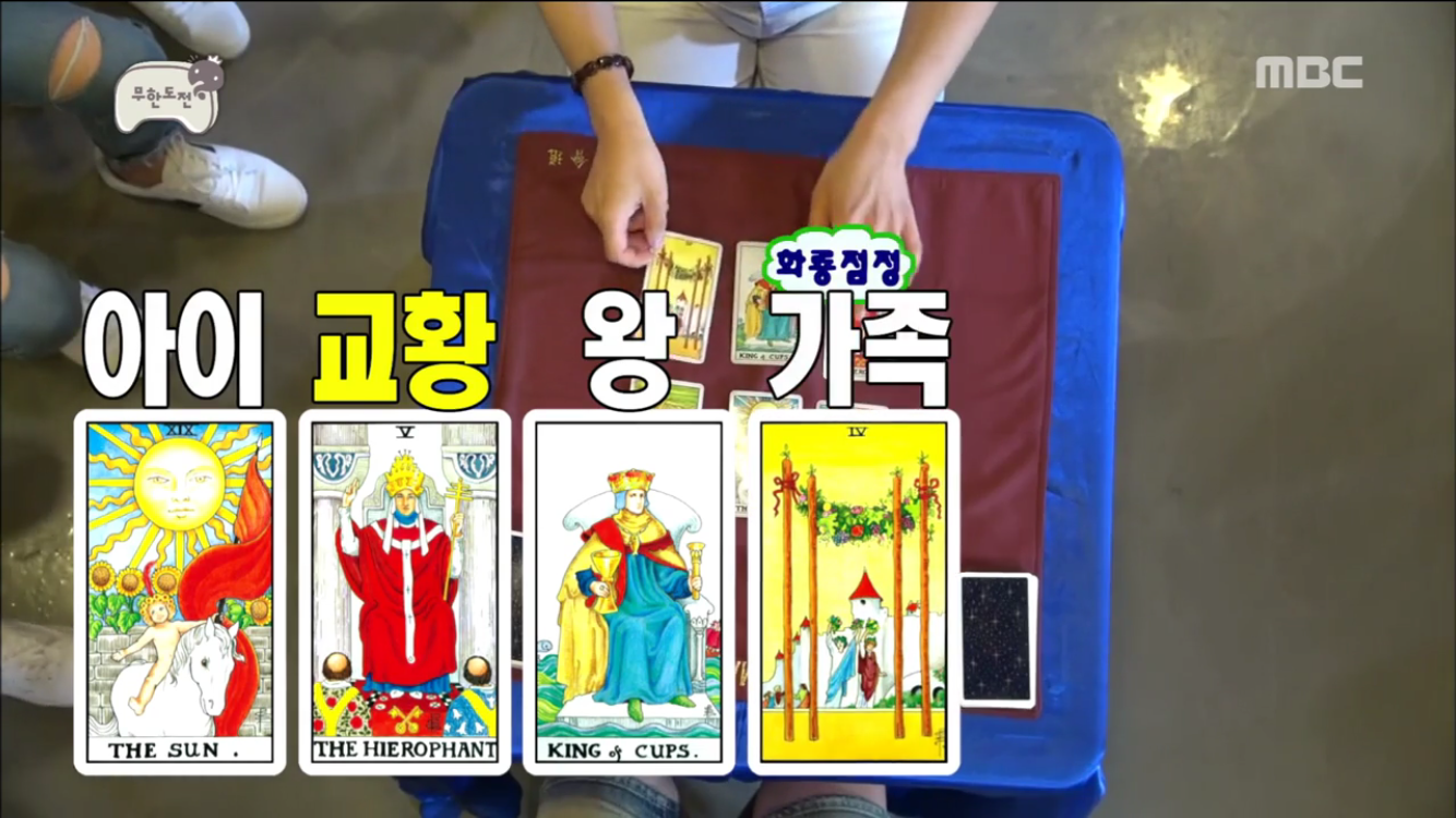 30일 방송된 MBC 예능 프로그램 <무한도전>에서는 게임 파트너를 정하기 위해 멤버들간의 타로점 궁합을 보는 모습이 그려졌다.