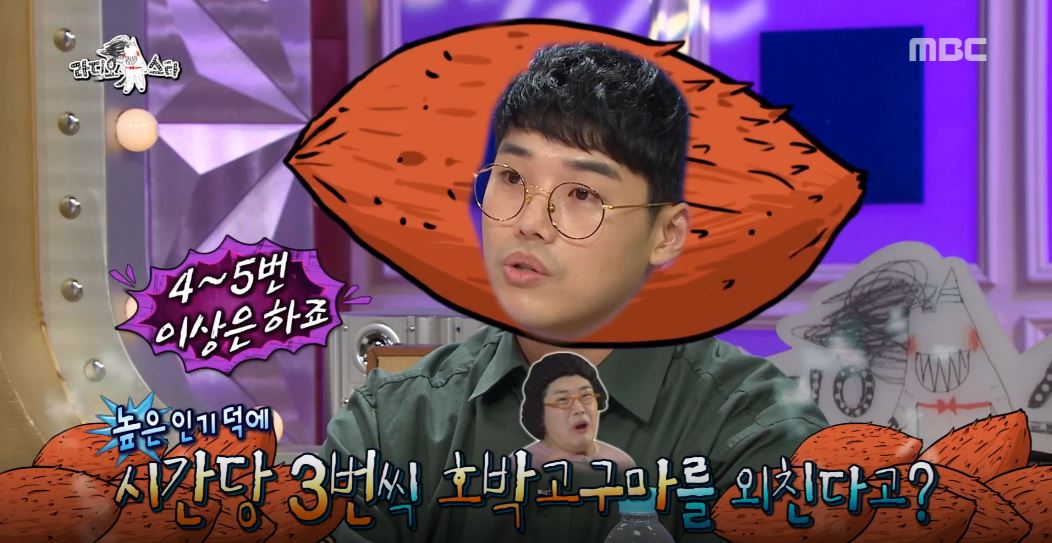 먼저 규현이 “권혁수를 대세 스타로 만들어 준 건 <거침없이 하이킥> 나문희 여사의 ‘호박고구마’ 대사였다”라고 말문을 열었다. 이에 권혁수가 “요즘 시간당 4~5번 이상 ‘호박고구마’를 외친다”라고 말했다.