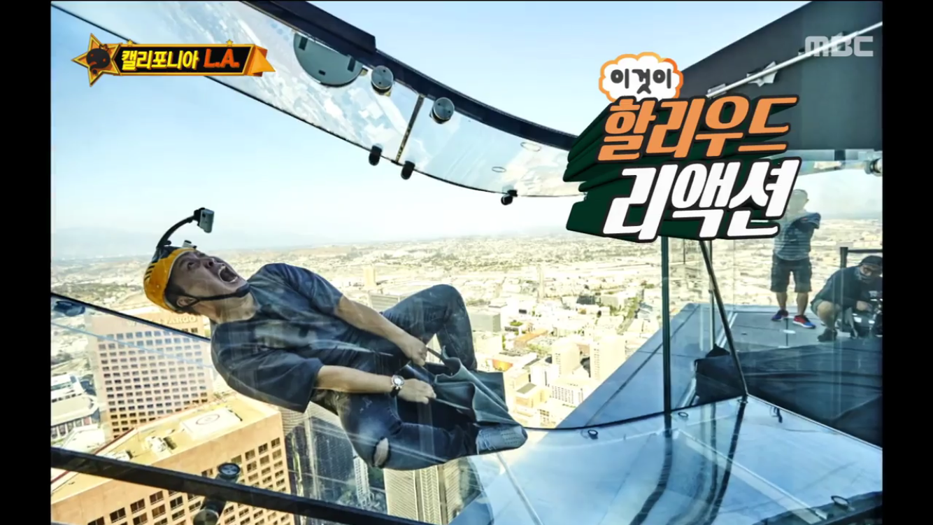 이날, LA로 떠난 멤버들은 '롤러코스터 도장 깨기'에 앞서 70층 건물에 위치한 투명 미끄럼틀을 체험했다.