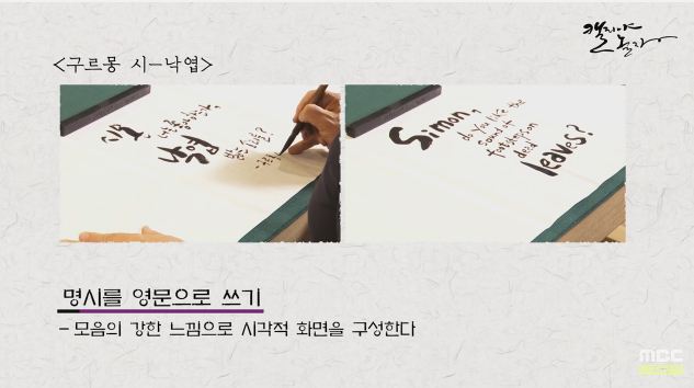 [캘리야 놀자] 영상은 유튜브 ‘MBC entertainment’ 채널을 통해 시청할 수 있다.