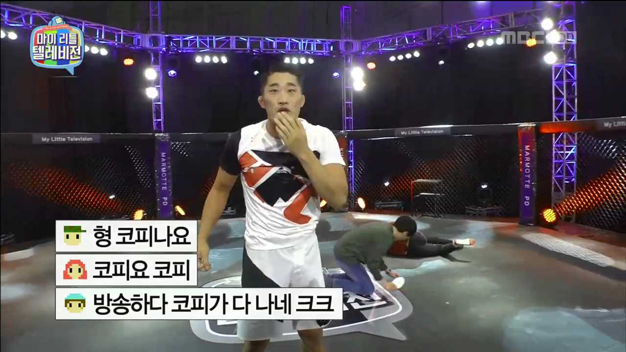 김동현 씨가 원래 되게 강하잖아요. 격투기 할 때 보면 진짜 무서운데. 나오자마자 10분 만에 코피가 터져서. (웃음) 그런 식으로 방송이 풀릴지 몰랐는데 주먹 휘두르면 휘두르는 대로 다 맞고, 엄청 아파하고, 엄살 심하고 그런 허당 같은 면이 의외였죠. 그땐 너무 웃겨서 카메라도 막 들썩들썩하고.