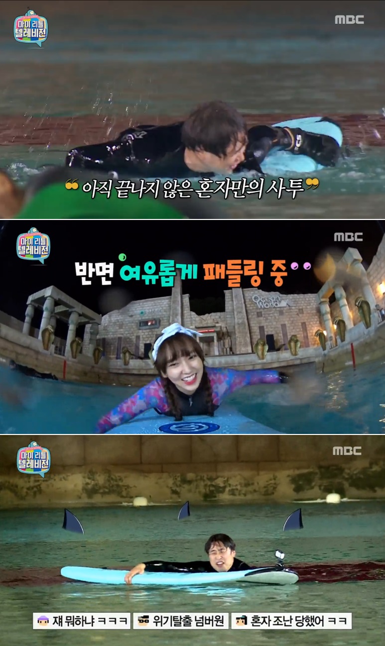 정재형의 사인에 패들링 시합을 펼친 두 사람의 대결은 그 어떤 반전도 없이 성소가 가볍게 승리했고, 모르모트 PD는 나 홀로 물에 빠져 버둥대며 큰 웃음을 안겼다.