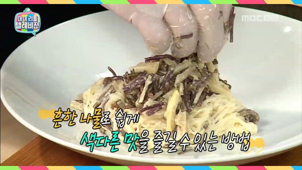 이렇게 간단하고, 이렇게 맛있는 레시피는 처음이야! 양은 많은데, 의외로 빨리 먹지 않으면 금방 쉬어버리게 되는 나물. 비빔밥으로 먹기에도 질려버렸다면? 이번에는 오세득표 ‘비빔국수’로 만들어보는 것은 어떨까? 마요네즈양파 소스가 주는 부드러운 맛이 소면과 어우러져 한국식 스파게티를 연상시킨다.