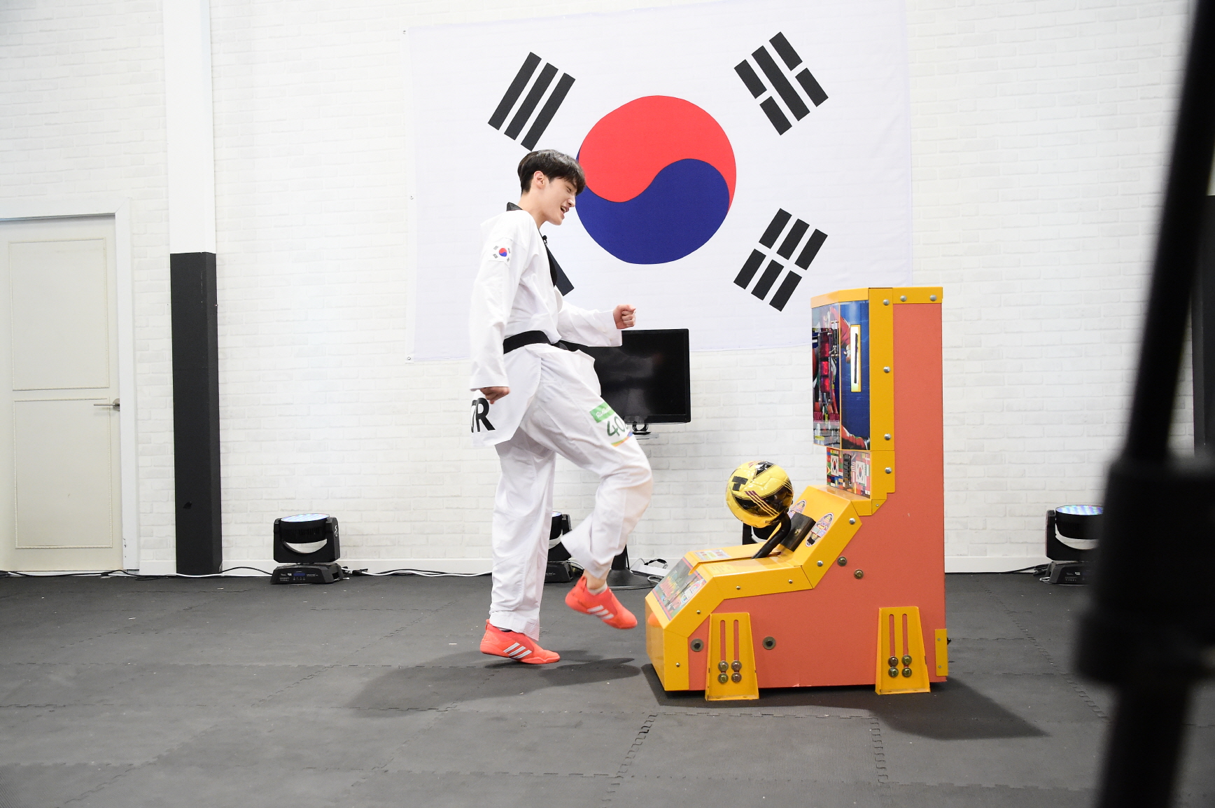 다음으로 이대훈이 강조한 것은 ‘힘’. 실제 현장에 발차기 강도를 측정할 수 있는 발 펀치 기계를 준비한 이대훈은 스태프들과 즉석 발차기 대결을 펼쳤다.