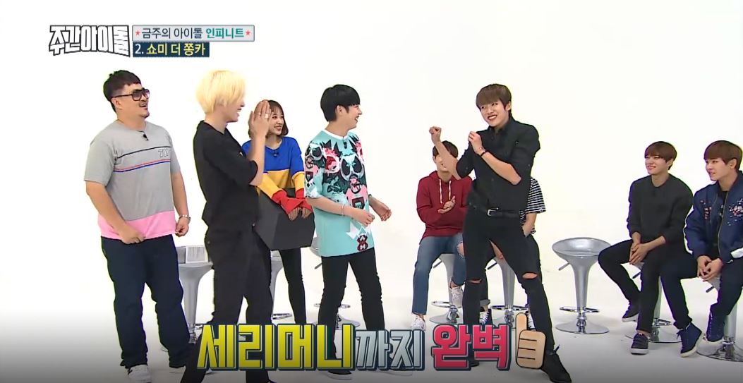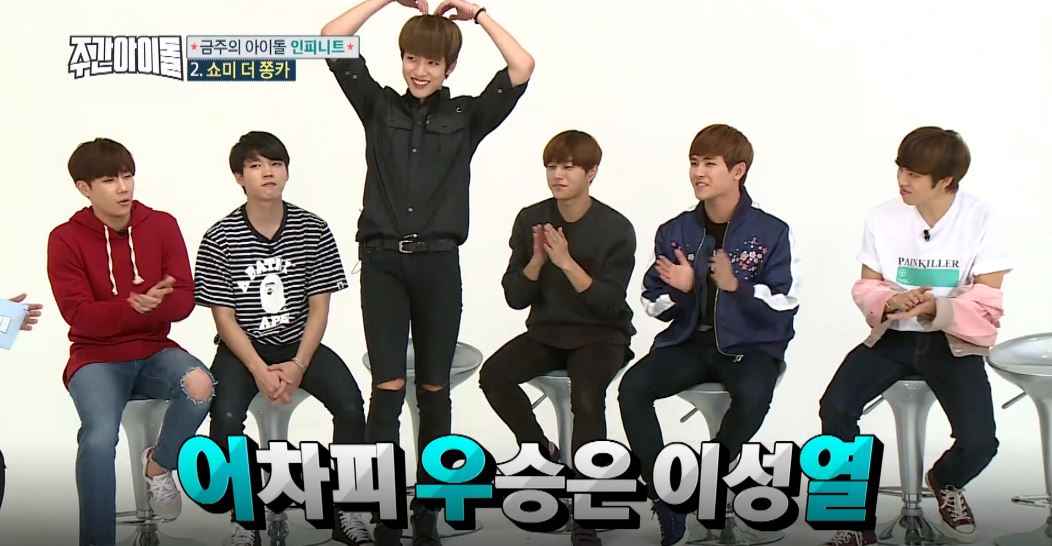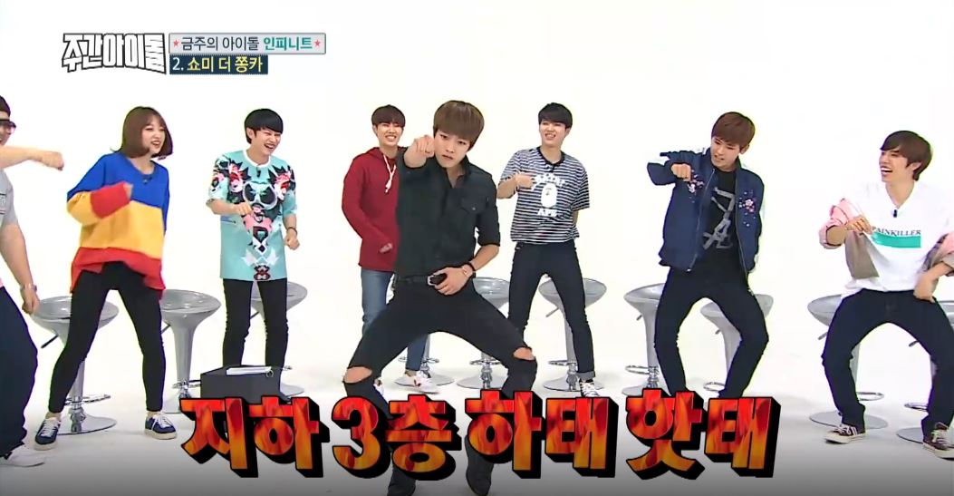 21일 방송된 MBC 에브리원 예능프로그램 <주간아이돌> 269회에서는 신곡 ‘태풍’으로 돌아온 인피니트(성규, 동우, 우현, 호야, 성열, 엘, 성종)가 ‘금주의 아이돌’ 게스트로 출연해 출중한 예능감을 뽐냈다.