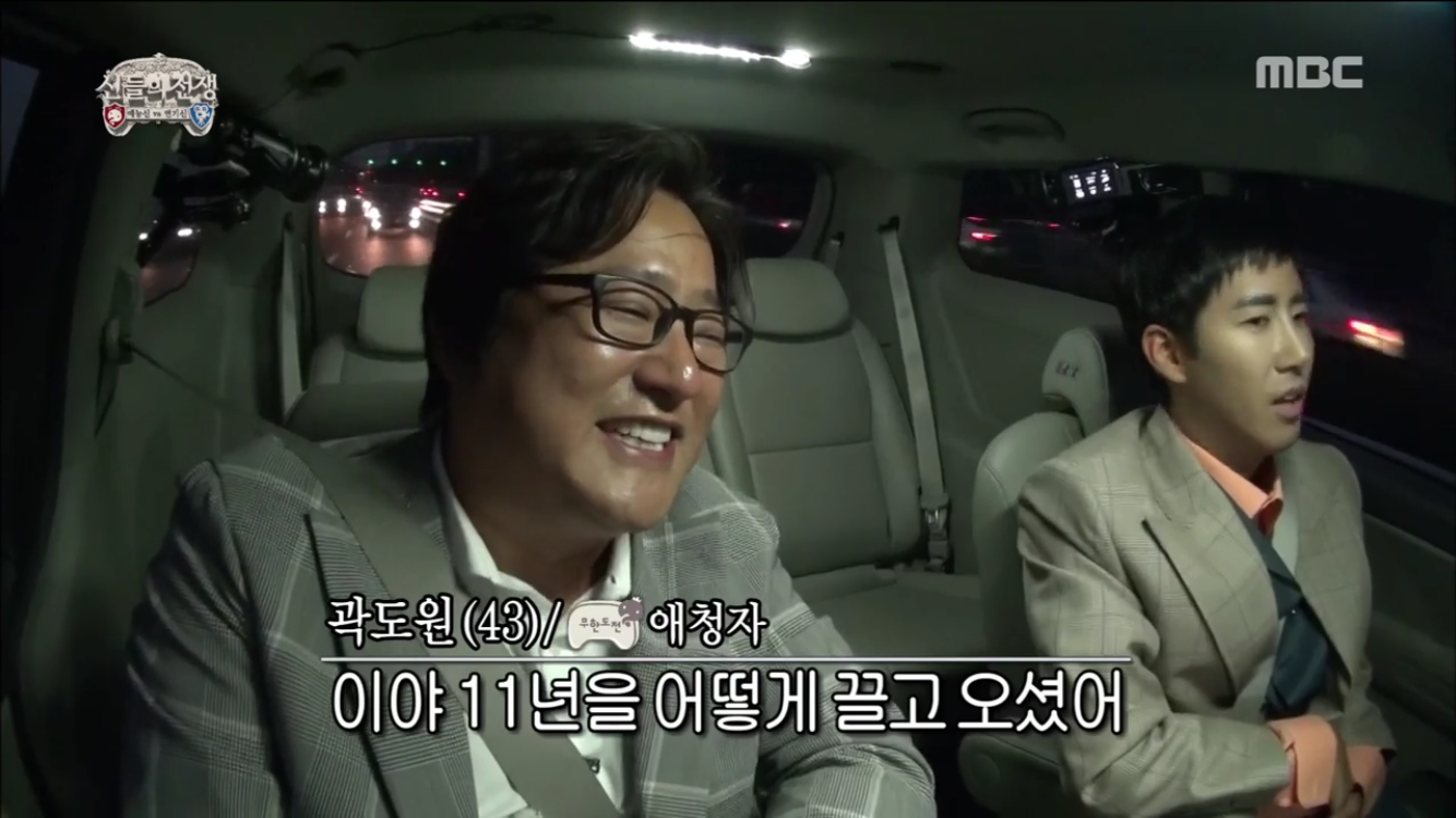 1일 방송된 MBC 예능 프로그램 <무한도전>에서는 곽도원이 예능신의 포로가 돼 함께 이동하는 모습이 그려졌다.
