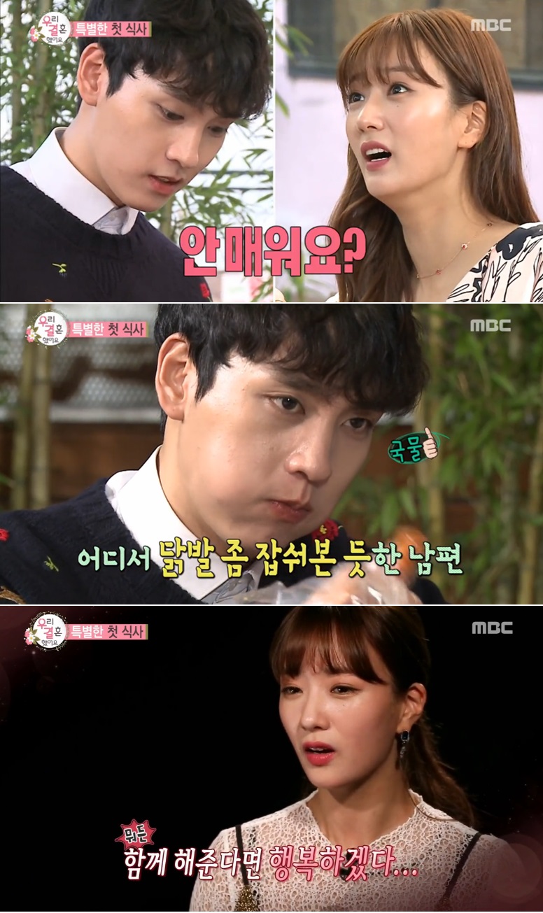8일 방송된 <우리 결혼했어요>에서는 최태준과 윤보미가 첫 식사를 하는 모습이 그려졌다.