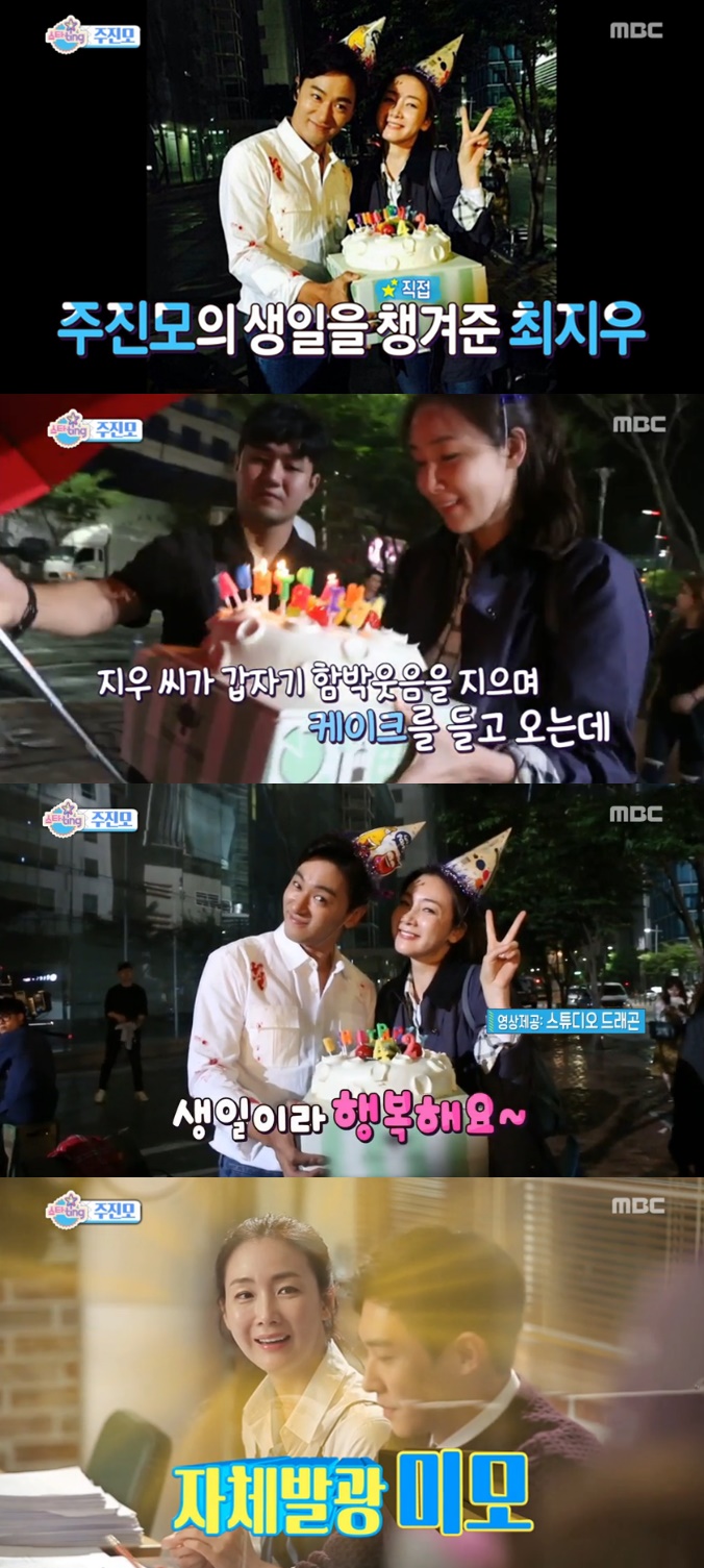 드라마 <캐리어를 끄는 여자>에서 주진모와 케미를 이루고 있는 최지우가 직접 생일 케익을 전달하며 깜짝 파티를 열어주었던 것. 주진모는 드라마 촬영 중 “지우 씨가 갑자기 함박웃음을 지으면서 케익을 가지고 들어왔다”고 전하며 예상치 못한 깜짝 생일 파티에 감동 받은 모습을 보였다.