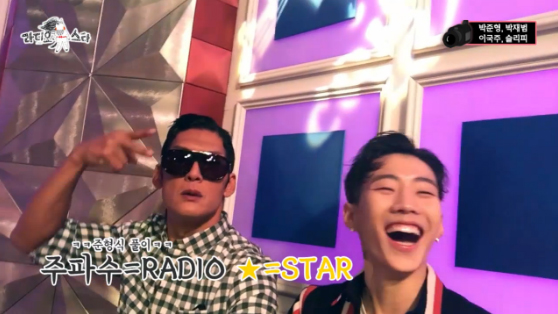 먼저 셀프캠을 손에 든 박준형은 특유의 예측 불가능한 멘트로, 함께 출연한 스타들을 폭소하게 만들었다. 미국식 제스처로 출연진 소개와 함께 출연 소감을 말하던 박준형은 갑자기 라디오스타를 가리켜 “주파수 별!”이라 외쳤고, 옆에서 이 멘트를 듣고 있던 박재범은 함박웃음을 지어보였다.