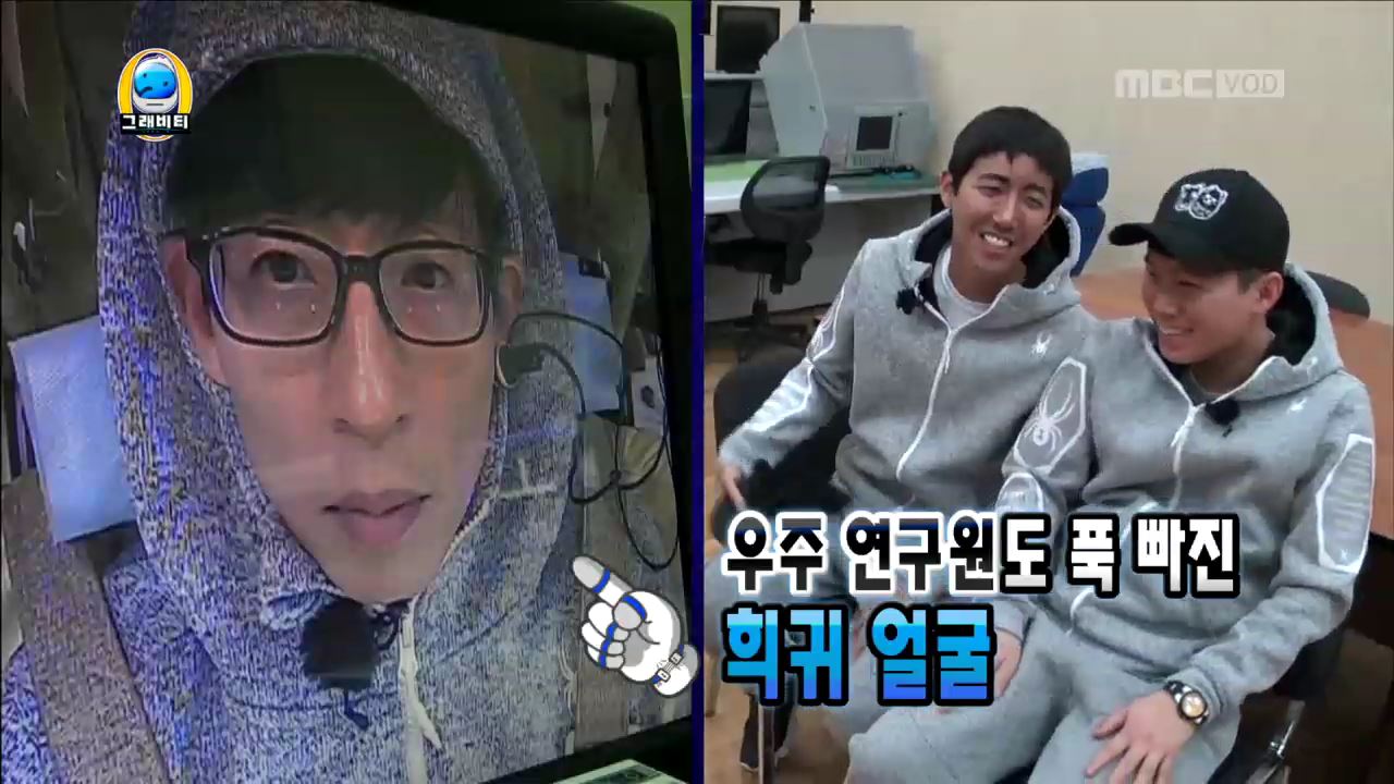 화면에 비친 유재석의 얼굴은 마트료시카 인형을 연상시키는 귀여우면서도 웃기는 모습이었다. 유재석의 얼굴을 기념으로 찍는 우주 연구원의 모습에 다른 멤버들은 “우주 연구원도 빠진 희귀한 얼굴”이라며 혀를 내둘렀다.