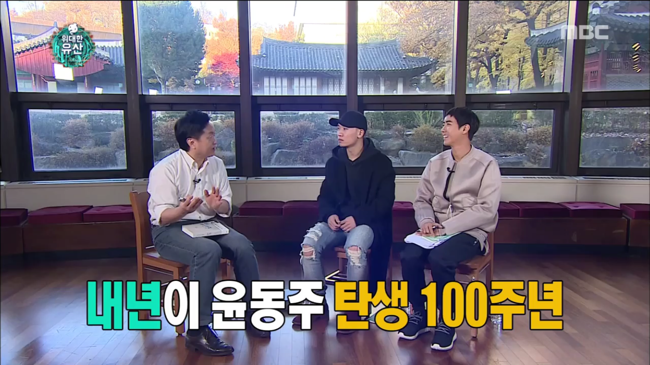 19일 방송된 MBC 예능 프로그램 <무한도전>에서는 개코와 광희가 윤동주 시인으로 주제를 잡고 전시관을 찾는 모습이 그려졌다.