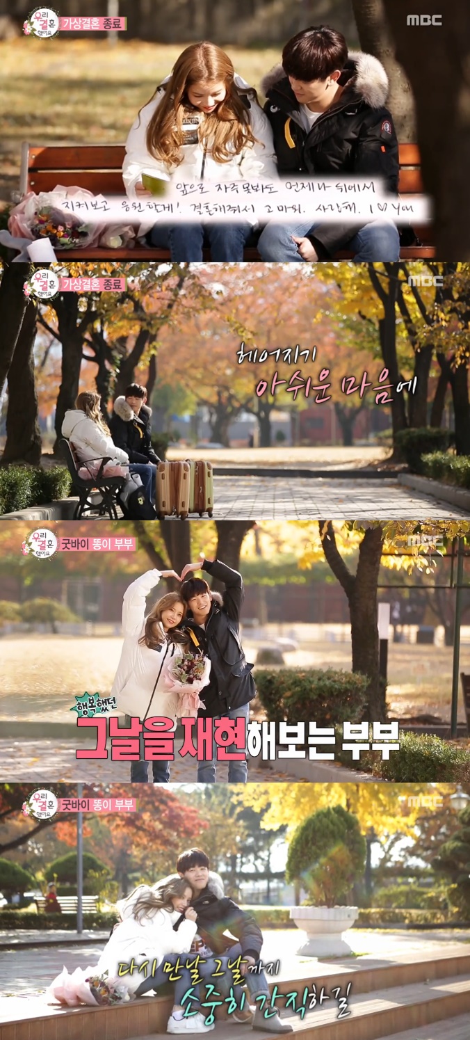 뒤이어 두 사람은 결혼식 때 찍었던 그 곳, 같은 장소에서 마지막 사진을 다시 남기며 가상결혼을 종료했다.