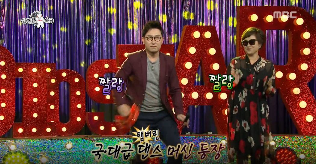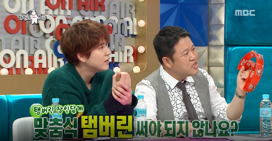 특히 김현욱이 촐싹거리는 춤과 현란한 탬버린 솜씨를 선보여 스튜디오를 후끈 달아오르게 했다. 규현은 “탬버린 장인답게 맞춰서 써야 하지 않나?”라고 물었다. 이에 김구라가 “몸통은 나무, 징글은 금이 좋겠다”라며 제안해 김현욱을 솔깃하게 했다.