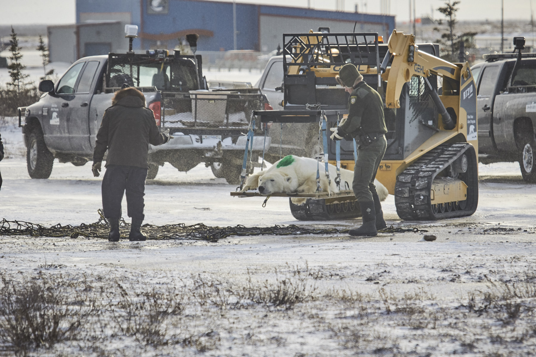 두 사람은 먹이를 찾으러 마을까지 왔다가 보호소에서 보호되던 북극곰이 헬리콥터에 실려 방사되는 모습을 포착했다. 거대한 북극곰이 헬기에 매달려 실려 가는 모습을 본 두 사람은 신기해하다가도, 배가 고파 마을까지 찾아와야 하는 북극곰의 현실을 실감하며 안타까워했다.