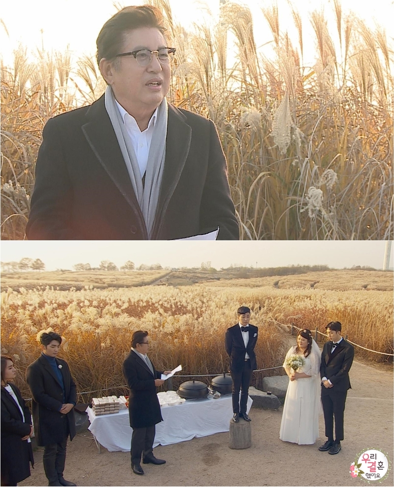 슬리피-이국주의 갈대밭 결혼식 현장은 3일 오후 4시 55분 MBC 예능프로그램 <우리 결혼했어요>를 통해 공개된다.