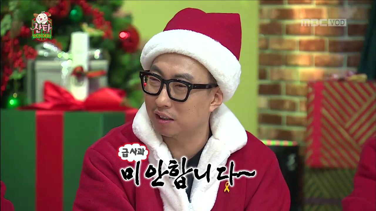 12월 10일 오후 방송된 MBC 예능프로그램 <무한도전>은 멤버들이 산타가 되기 위해 도전하는 ‘산타 아카데미’ 특집으로 꾸며졌다.