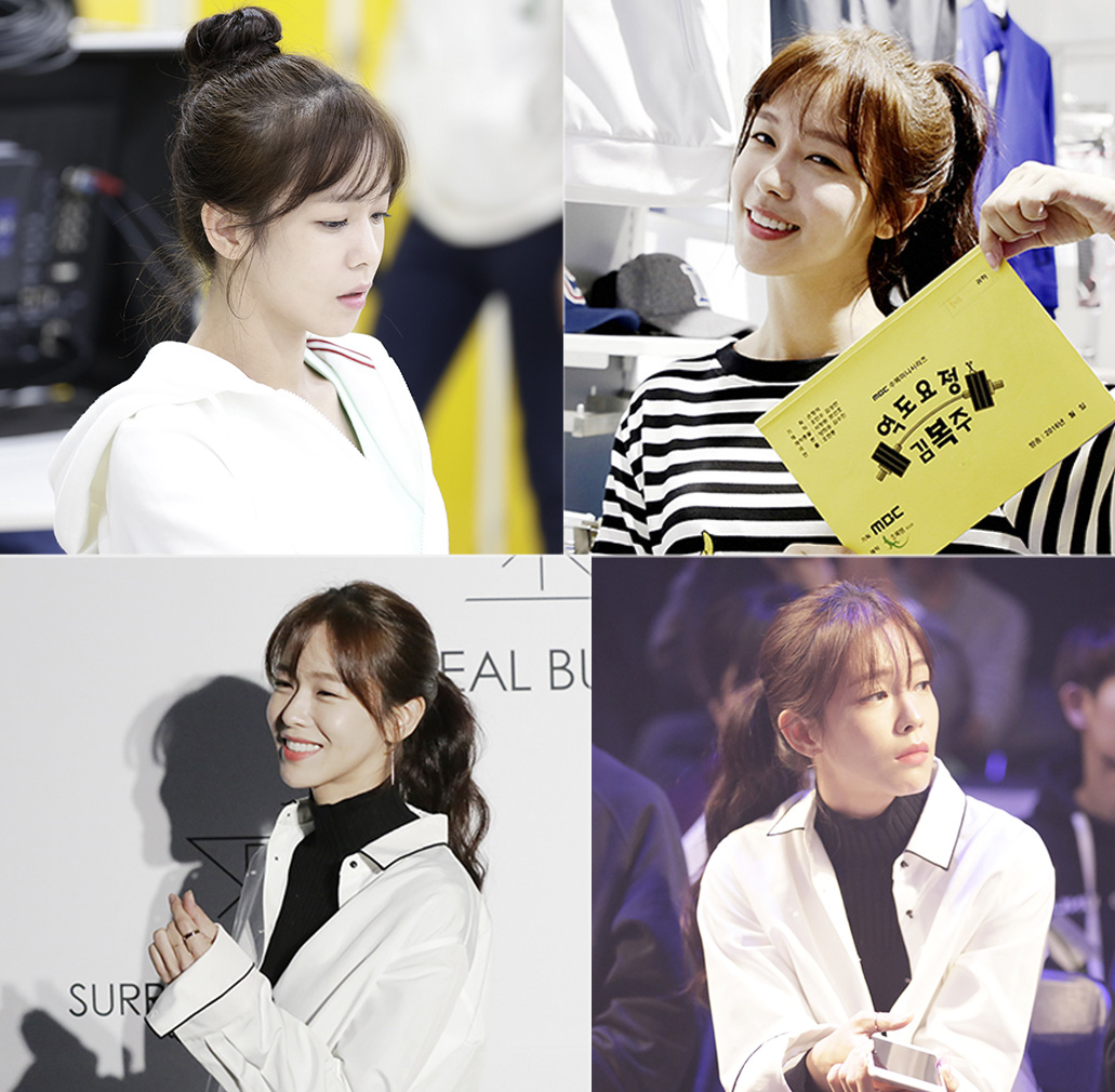 드라마가 아닌 현실에서는 조금 더 여유롭고 다양한 스타일링으로 분위기 있는 포니테일을 연출하고 있다. 제작발표회처럼 격식을 갖춘 자리에서 앞머리의 볼륨을 넣거나 보슬보슬한 텍스처감을 살려 늘어진 머리에 물결 웨이브를 넣었다. 사랑스럽고 자연스러움을 살린 블로우 포니테일이나 우아함을 살린 로우 포니테일 등 다양한 연출을 시도했다. 또 겨울철에는 옷의 부피가 커지는 만큼 포니테일 스타일에 악세서리를 연출하며 포인트를 주었다.