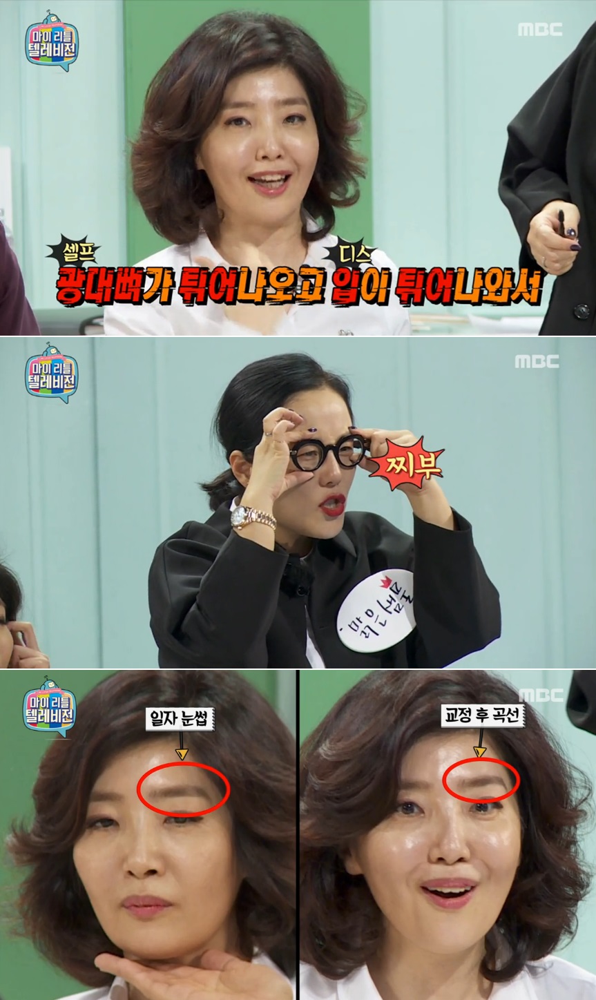 이어 여에스더는 정샘물에게 “제가 광대뼈가 튀어나오고, 입이 튀어나왔다.”며 셀프 디스로 자신의 단점을 전달했다. 이에 정샘물은 “눈썹이 일자라 찌그러져 보인다.”고 설명하자, 여에스더는 “늙어서 그런다.”며 또 다시 셀프 디스로 웃음을 자아냈다.