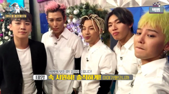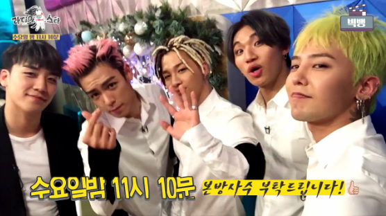 이어 빅뱅 멤버들은 탑의 성대모사와 승리의 폭탄 발언과 이미지 쇄신 등 다양한 에피소드를 대방출했다고 전해 팬들의 시청 욕구를 자극했다.