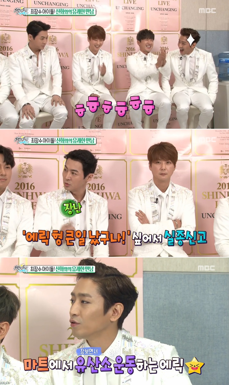 이어 에릭은 “실제로 쉴 때는 마트에서 유산소 운동을 한다”고 덧붙여 웃음을 자아냈다.