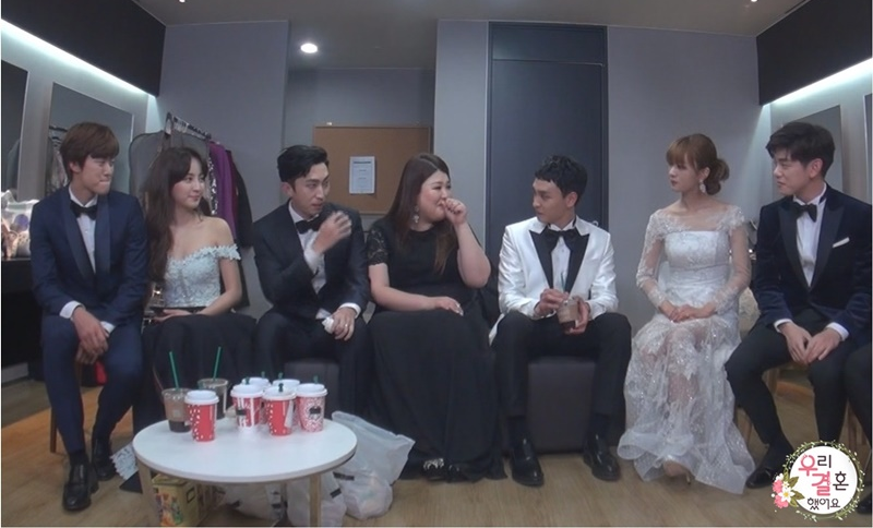 <우리 결혼했어요> 커플들이 2016 MBC 연예대상에 떴다. 긴장감 넘치는 분위기 속에 시상식 대기실에서 커플들의 첫 만남이 이루어졌고, ‘남편’ 슬리피-최태준-공명은 아내 자랑 배틀을 펼친 것으로 알려져 더욱 궁금증을 높이고 있다.