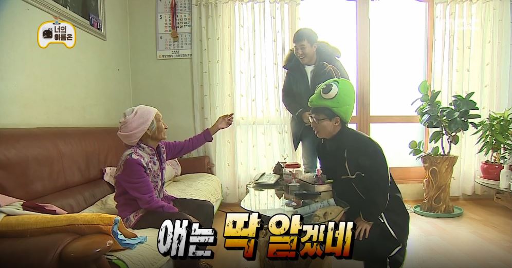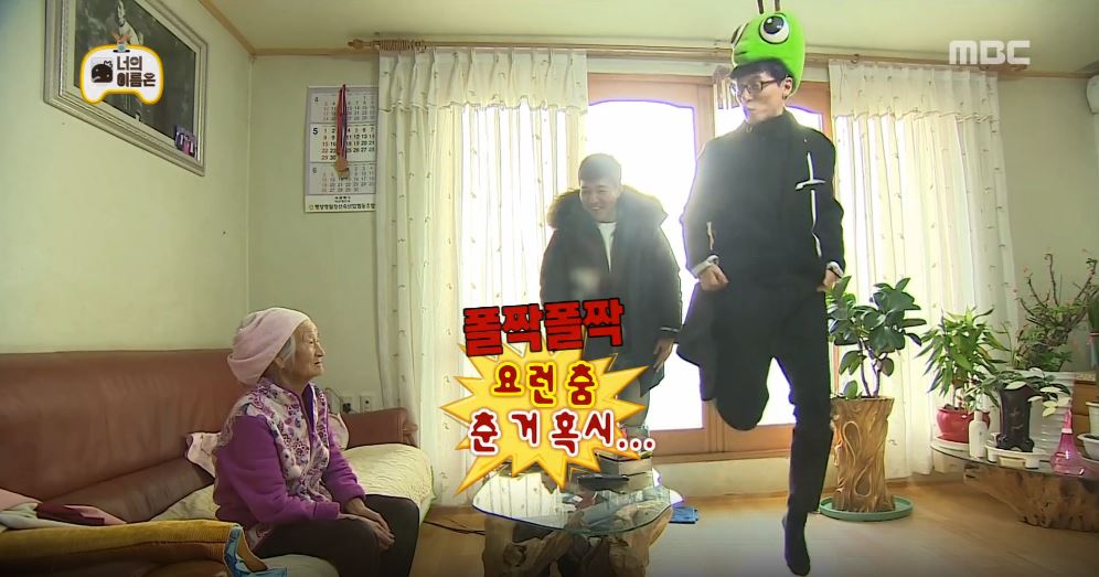 급기야 유재석은 메뚜기 탈을 쓰고 폴짝폴짝 춤까지 췄다. 하지만 할머니는 “만화에 나오는 사람 같구먼”이라며 끝내 유재석을 알아보지 못했다. 유재석은 TV 채널을 돌리며 자신이 나온 프로그램을 찾았지만, 출연 방송 역시 찾을 수 없었다. 또한, 할머니는 “웃는 상이야”라며 김종민만 예뻐해 유재석에게 굴욕을 선사했다.
