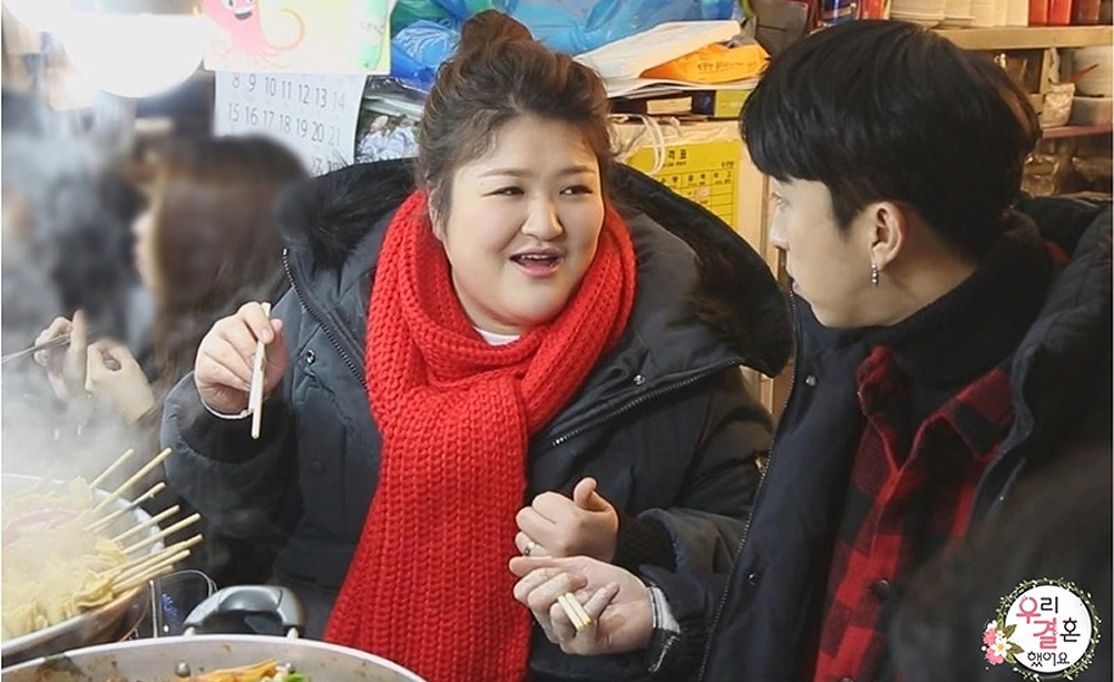 21일(토) 방송될 MBC 예능프로그램 <우리 결혼했어요>에서는 광장시장 데이트에 나선 ‘국슬 커플’ 슬리피-이국주의 모습이 공개된다.