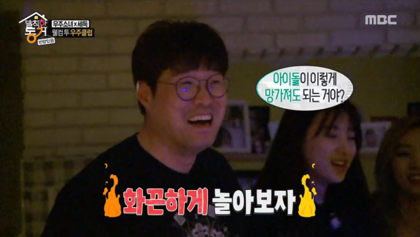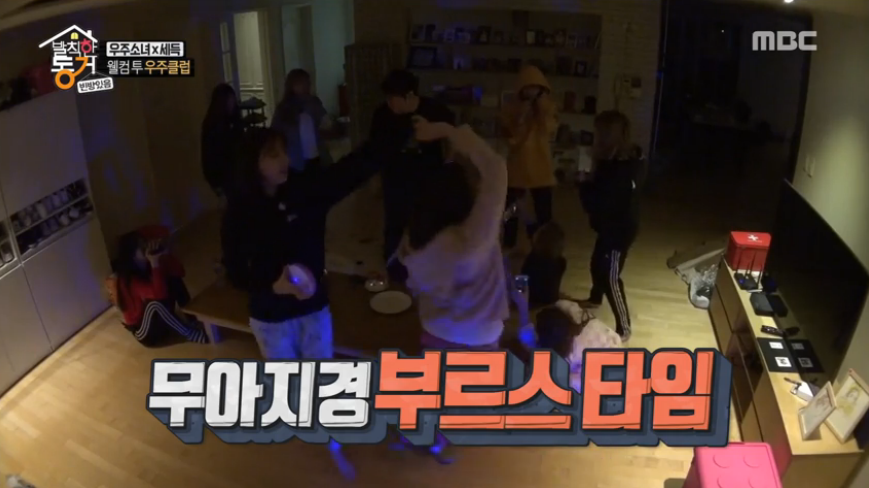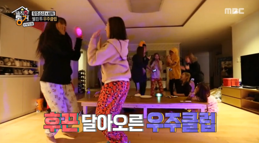 이에 오세득은 미니 마이크를 가지고 왔고, 흥이 오른 우주소녀들은 순식간에 ‘우주클럽’을 오픈했다. 우주소녀는 순식간에 조명까지 준비했고, ‘당돌한 여자’, ‘티어스(Tears)’ 등의 노래를 열창하며 흥겨운 댄스 타임을 즐겼다.
