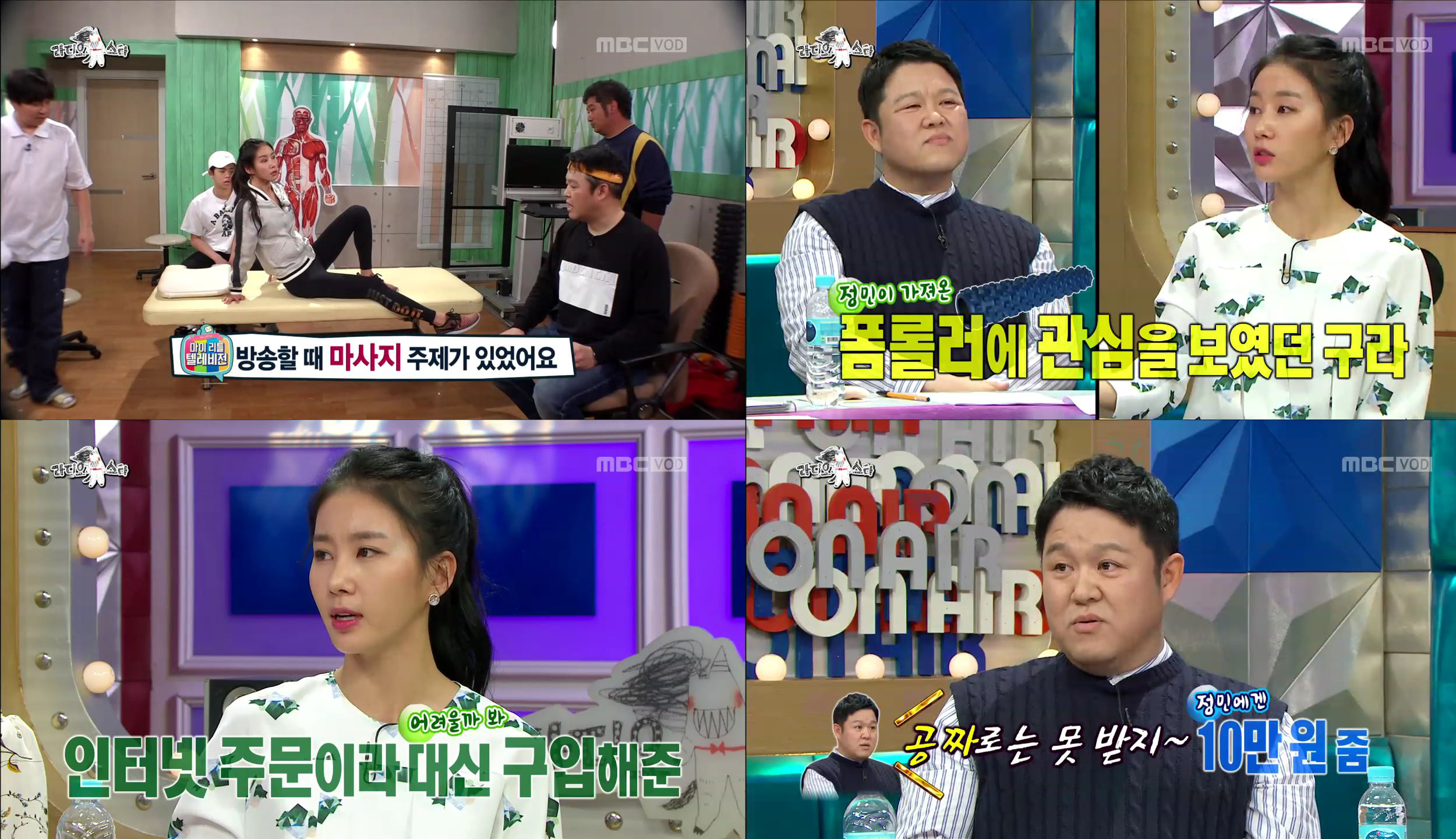 김구라 "제가 등이 아파요. 그래서 마사지를 자주 받으러 다니는데, 폼롤러가 좋아보이더라고요. 그래서 (정민 양한테)그런 거는 어떻게 사는 거니? 하고 물어서 사게 된 거고, 돈도 줬어요. 방송에서 재미를 위해 껴안고 잔다고 말한 거지, 그 울퉁불퉁한 걸 어떻게 껴안고 자요."