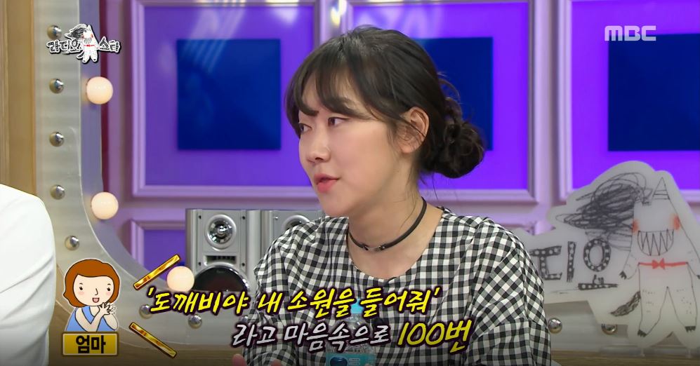 먼저 박경혜는 “<도깨비> 출연을 너무 하고 싶어서 새벽 기도도 하고, 절에 공양도 했다. ‘빌 수 있는 건 다 빌어보자’였다”라고 전했다. 이어 그녀는 “엄마가 ‘도깨비가 일생에서 단 한 번 소원을 들어주는 때가 있다’라고 하셨다”라고 말했다. 그래서 동네 정자에 가서 보름달의 정기를 받으며 칼을 물고 소원을 빌었다는 것.