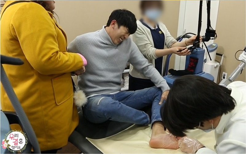 <우리 결혼했어요> 슬리피가 6년을 품었던 발바닥 사마귀 제거에 나섰다. 슬리피는 ‘아내’ 이국주에 손에 이끌려 병원을 방문, 비명으로 병원을 꽉 채우며 엄살 대마왕의 모습을 보여준 것으로 알려져 더욱 궁금증을 높이고 있다.