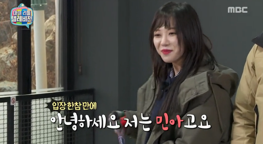 반려견 모찌와 등장한 민아는 인사도 나누지 못한 채 시작부터 모찌에게 끌려 다니며 정신없는 모습을 보였다. 가까스로 민아가 자기 소개를 하기는 했지만 금세 움직이는 모찌에게 이끌려 휘청거리는 모습을 보였다. 이에 민아는 “저희 개가 착한 갠데 힘이 세 가지고...”라며 민망함을 드러냈다.