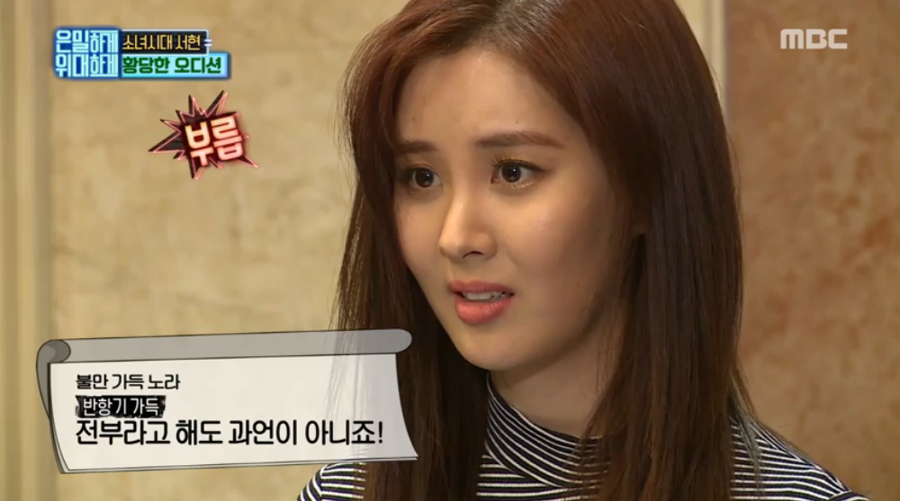 12일에 방송된 MBC 예능프로그램 <은밀하게 위대하게>에서는 수영과 효연의 의뢰로 황당한 할리우드 오디션에 참여하게 된 서현의 모습이 그려졌다.