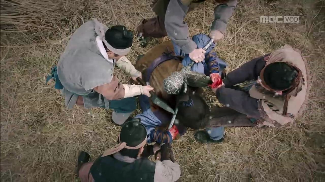 “여막 근처에 죽어있는 걸 확인하고 데려왔어라”라고 말했다. “역병으로 죽은 게 아니라 배곯아 죽은 것이니 걱정마시라”라고 하지만 충원군은 얼른 치우라며 질색했다.
