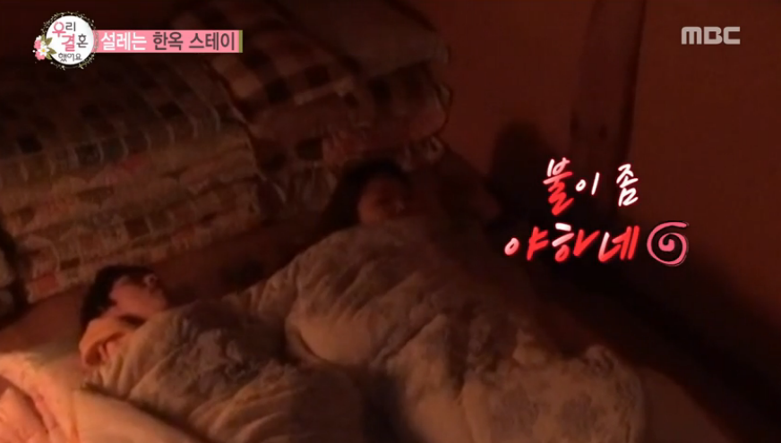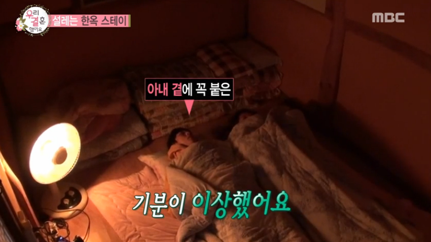 이날, 두 사람은 이불이 깔린 온돌방에서 잠을 청하기로 했다.