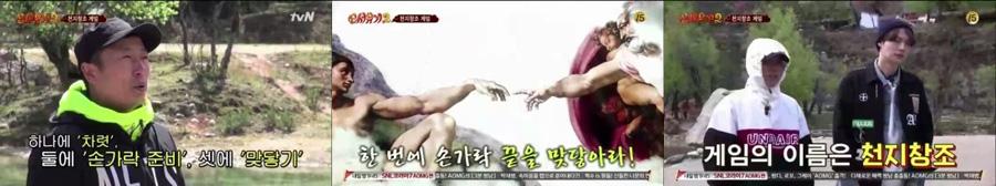 5. 천지창조 게임명화 '천지창조'의 장면 처럼 하나, 둘, 셋에 맞춰 서로의 손끝이 한번에 맞닿도록 하는 게임. 단순한 게임이지만 참가자의 호흡이 중요한 변수로 작용한다.