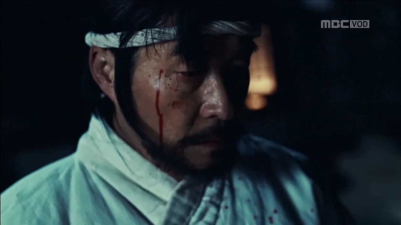 김상중 : 제가 이 드라마를 하면서 제일 막막했던 장면이에요. 근데 직접 조참봉을 베는 촬영을 하고 나서 '이런 감정이구나' 알게 되었죠. 복수의 통쾌함, 금옥의 죽음에 대한 안타까움, 이런 것들이 모두 섞여서 공허함과 쓸쓸함이 느껴졌어요. 그래서 이때 방문을 나설 때의 표정이 가장 베스트 장면이라고 생각을 해요.