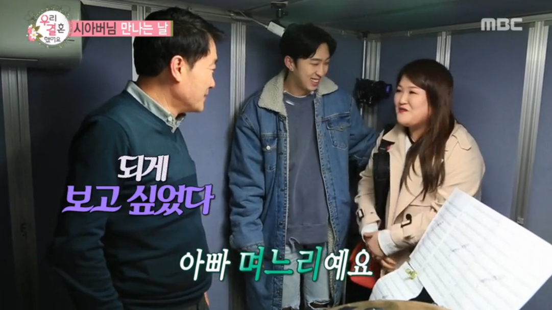 이국주는 떨리는 마음으로 시아버지와 첫 대면을 했다. 슬리피의 아버지는 “너무 반갑다.”고 반기며 “되게 보고 싶었다.”고 전했다.