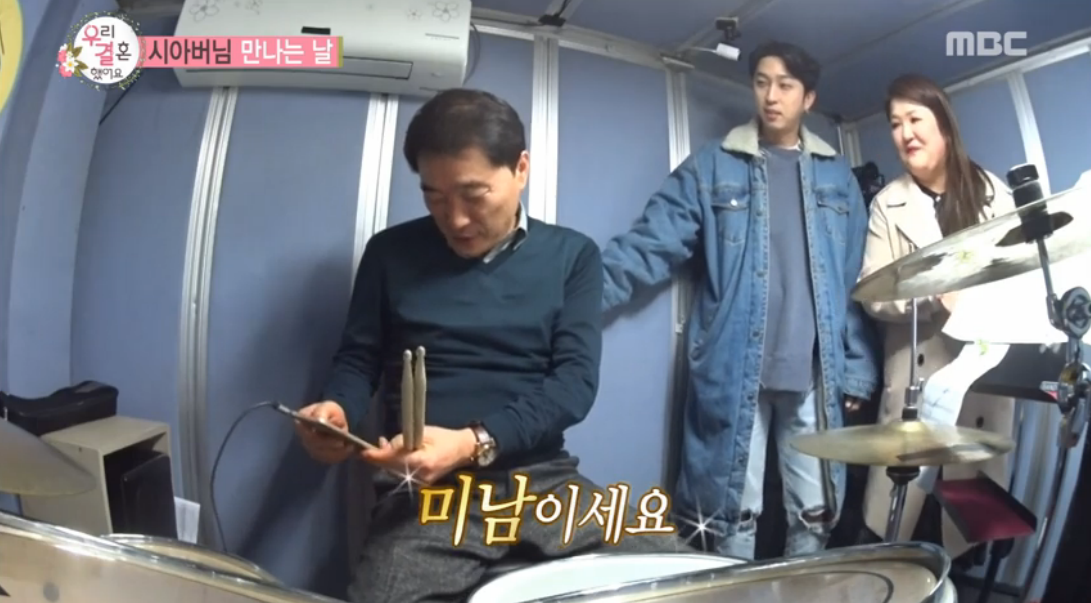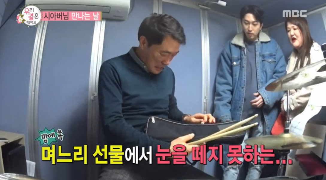 이국주는 “드럼 치는 친구에게 물어보고 준비했다.”며 슬리피 아버지에게 준비해 온 드럼 스틱을 선물로 전했다. 며느리의 센스있는 선물에 슬리피 아버지는 흐뭇한 미소를 지었다.