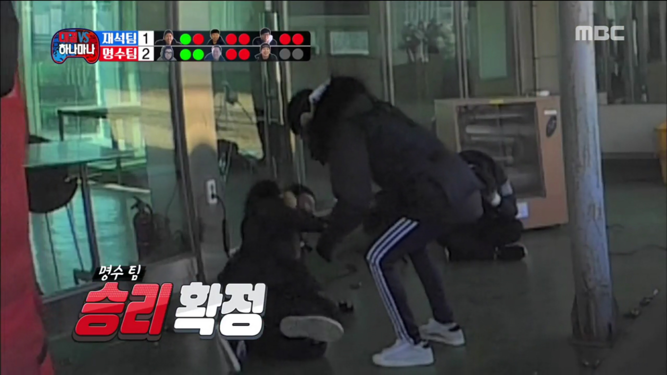 하지만 명수팀의 아량으로 재재대결을 펼쳤다. 그럼에도 불구하고 패배한 재석팀은 결국 무릎을 꿇은 채 굴욕 동영상을 촬영해야했다.