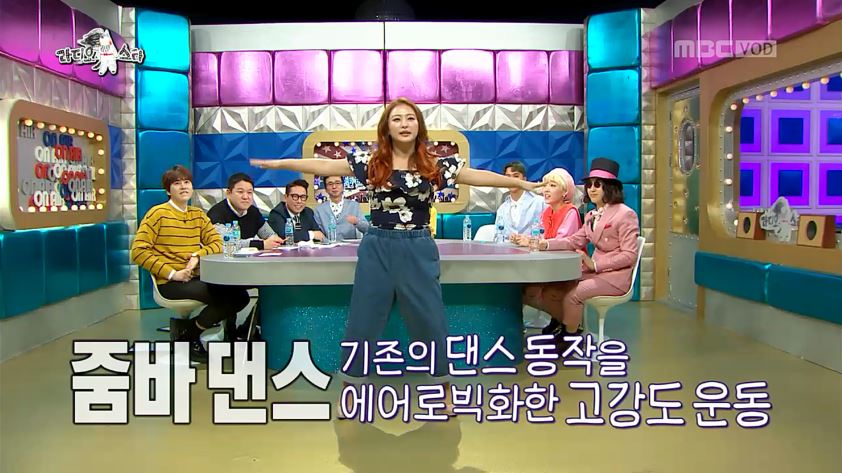 이어 심진화는 자리에서 일어나 줌바 댄스를 추기 시작했다. 그녀가 “처음엔 털어줘야 한다”라며 팔을 흔들자, 김구라가 “엄청 털린다”라며 놀라워했다. 규현은 “줌바 댄스 맞나?”라며 의심쩍어했다.