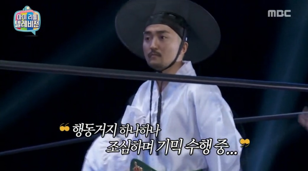 느릿한 팔자 걸음과 하인의 손길에 상의 탈의까지 섬세하게 선비 기믹을 실현해 웃음을 자아냈다.