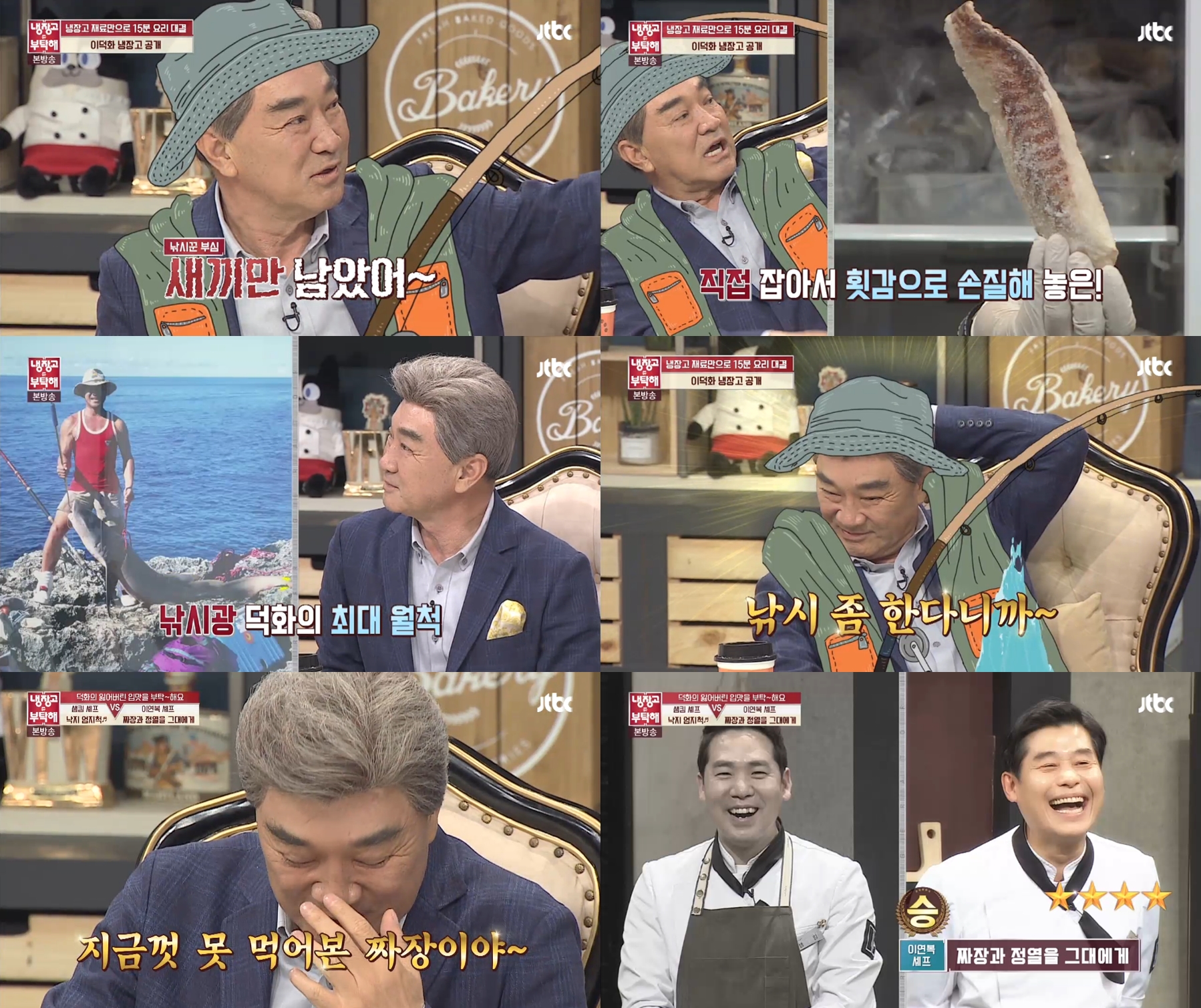 이덕화는 “난 상어까지 잡아봤다, 큰 건 다 먹었고 지금 냉장고에 남은 건 새끼들만 남은 거다”라며 연예계 프로낚시꾼다운 허세로 웃음을 자아냈다.