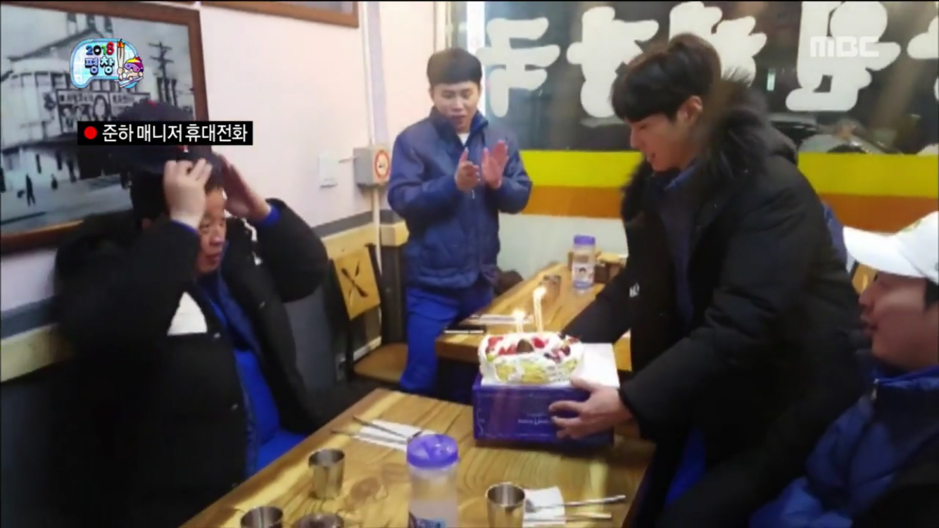 박보검은 정준하의 생일임을 뒤늦게 전해듣곤 손수 생일 케이크를 준비해 정준하에게 선물했다.