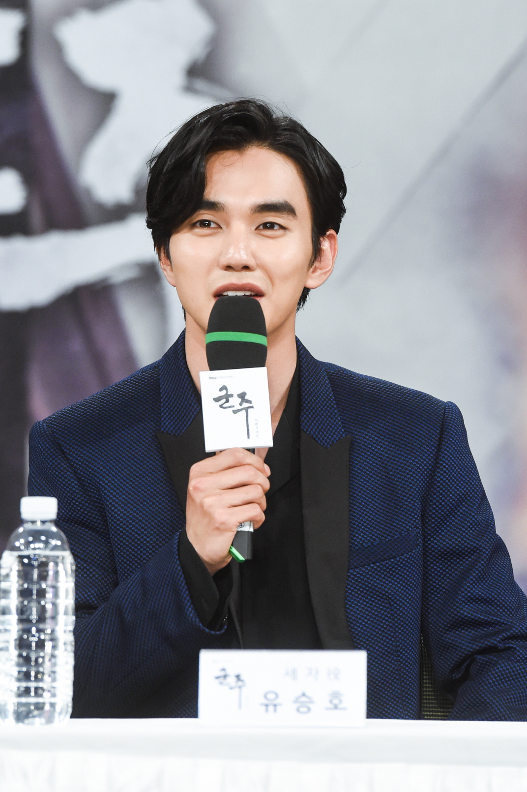 8일 오후 2시 상암동 MBC 신사옥에서는 새 수목미니시리즈 <군주>의 제작발표회가 열렸다. 이날 행사에는 주연배우 유승호, 김소현, 김명수(엘), 윤소이, 박철민, 허준호, 노도철 PD가 참석해 기자들의 질문에 답변하였다.