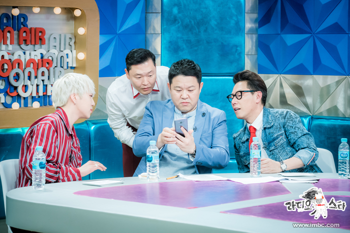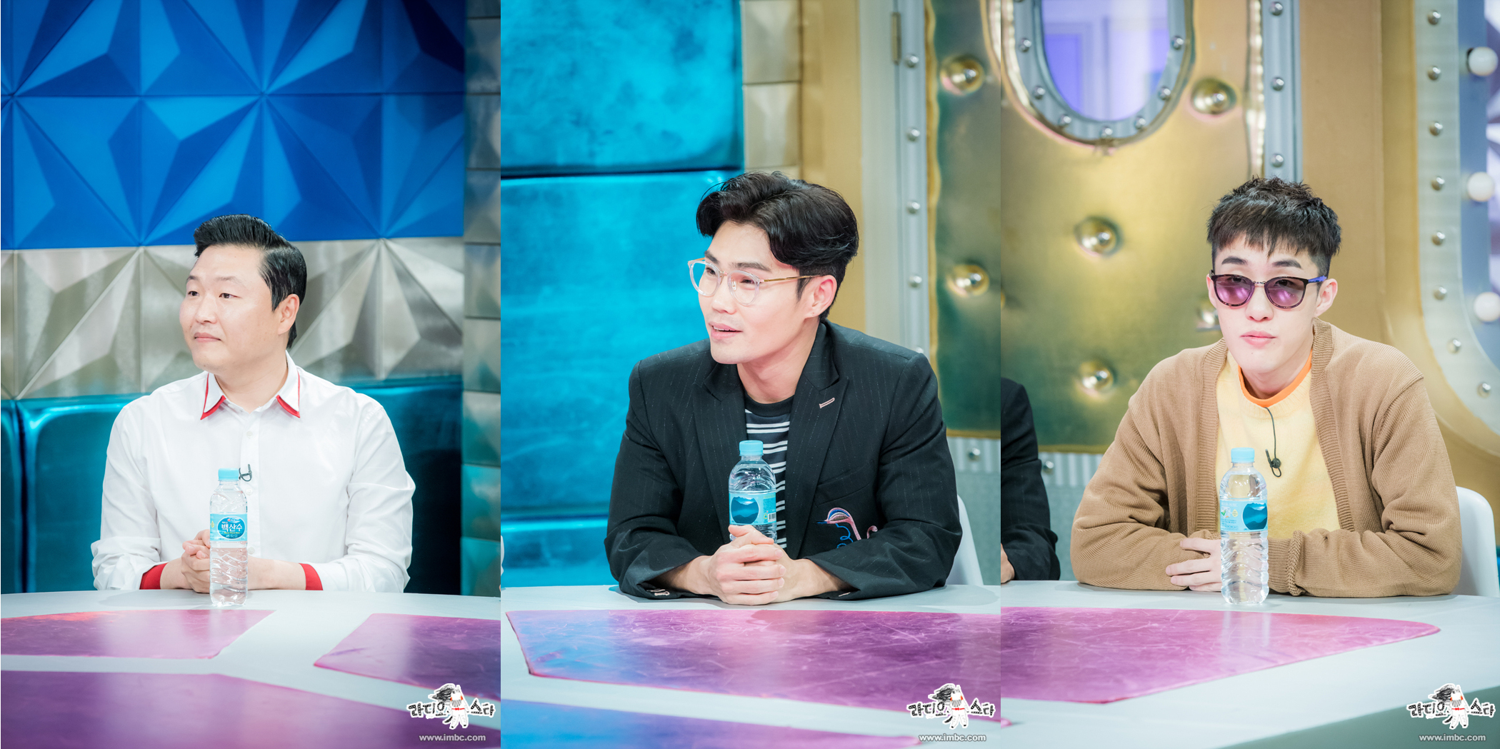포토로 미리보는 <라디오스타> 싸이, 김범수, 자이언티, 강승윤까지 ‘화려한 출격’인기 올킬, 비주얼도 거드는 스타들이 왔다! 17일(수) 방송을 앞두고 있는 MBC 예능프로그램 <라디오스타>에서 '음악의 완성은 얼굴' 특집으로 가수 싸이와 김범수, 자이언티, 그리고 스페셜 DJ 강승윤이 출격을 예고했다.