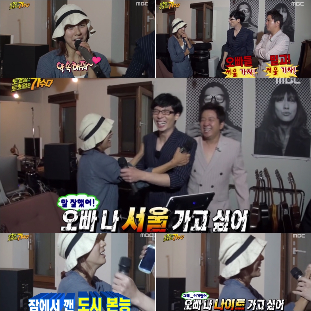 그러나 촬영이 끝날 즈음 유재석에게 “오빠 나 서울 가고 싶어”, “나이트 가고 싶어”라고 하소연 하며, 춤에 대한 열정을 보여준바 있었다.