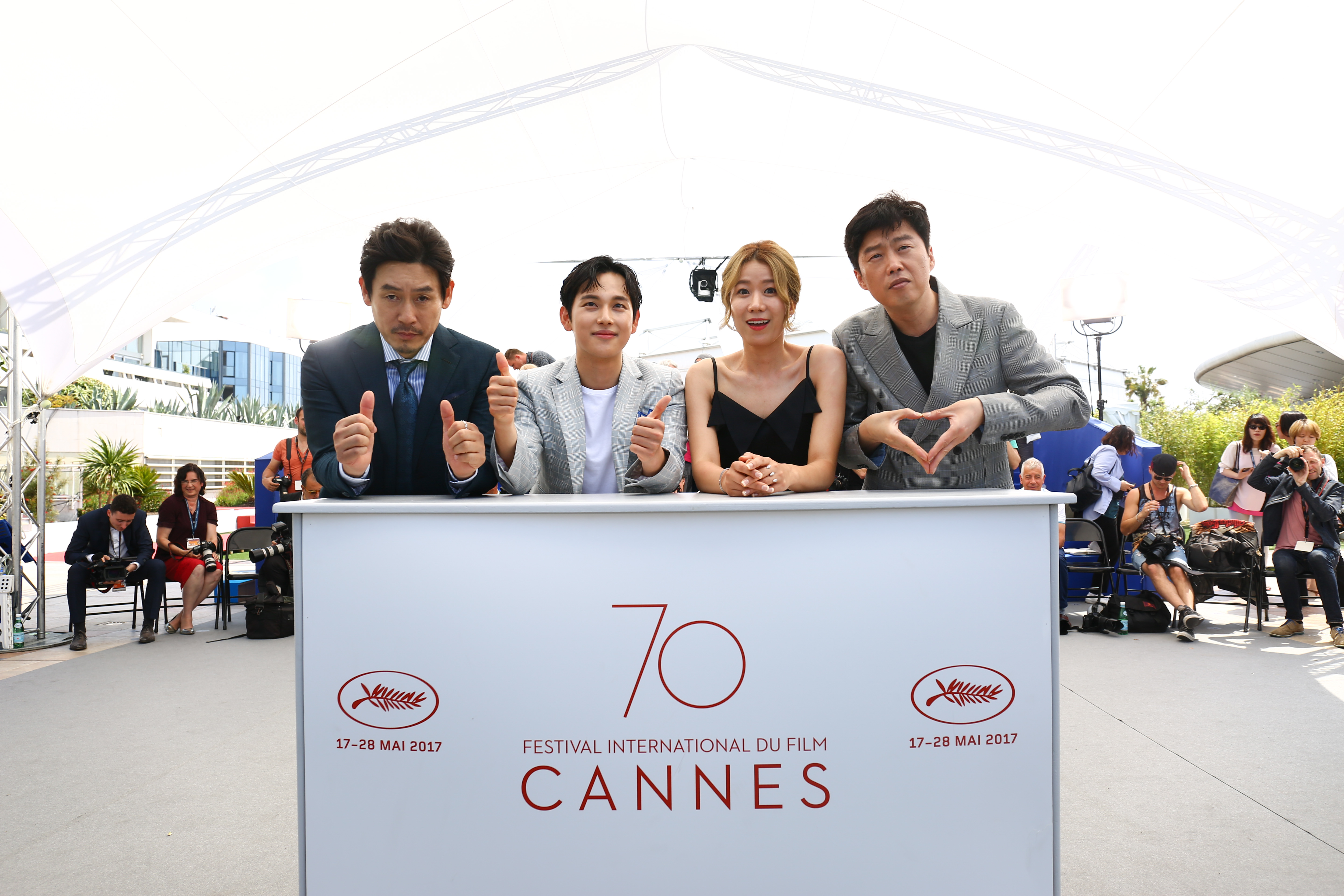 제70회 칸국제영화제 초청된 한국영화 가운데 최장 시간인 8분간 기립박수가 쏟아졌던 영화 <불한당: 나쁜 놈들의 세상> 공식 포토콜이 현지 시간으로 25일 낮 12시 10분 프랑스 칸 팔레 드 페스티발에서 뜨거운 취재 열기 속에 진행됐다.