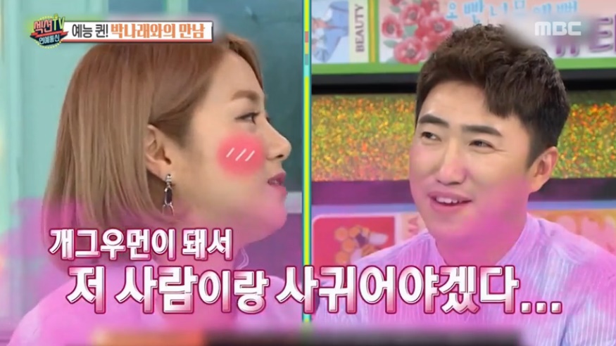 김우리가 타 프로그램에서 “개그우먼이 돼서 저 사람(장동민)과 사귀어야겠다.”라고 했던 박나래의 발언을 언급하자 박나래는 “데뷔 전 장동민 씨가 TV에 나오는 모습이 너무 재미있어서 사귀고 싶었다.”고 밝혔다.